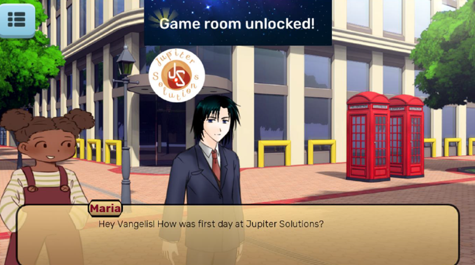 Galaxy Solutions simulates the recruitment process in a software engineering environment. Players assume the role of a new graduate applying for a position at the fictional company Galaxy Solutions and experience job applications, HR interviews, technical interviews, and early workplace interactions. Their decisions affect progression, outcomes, and professional readiness.